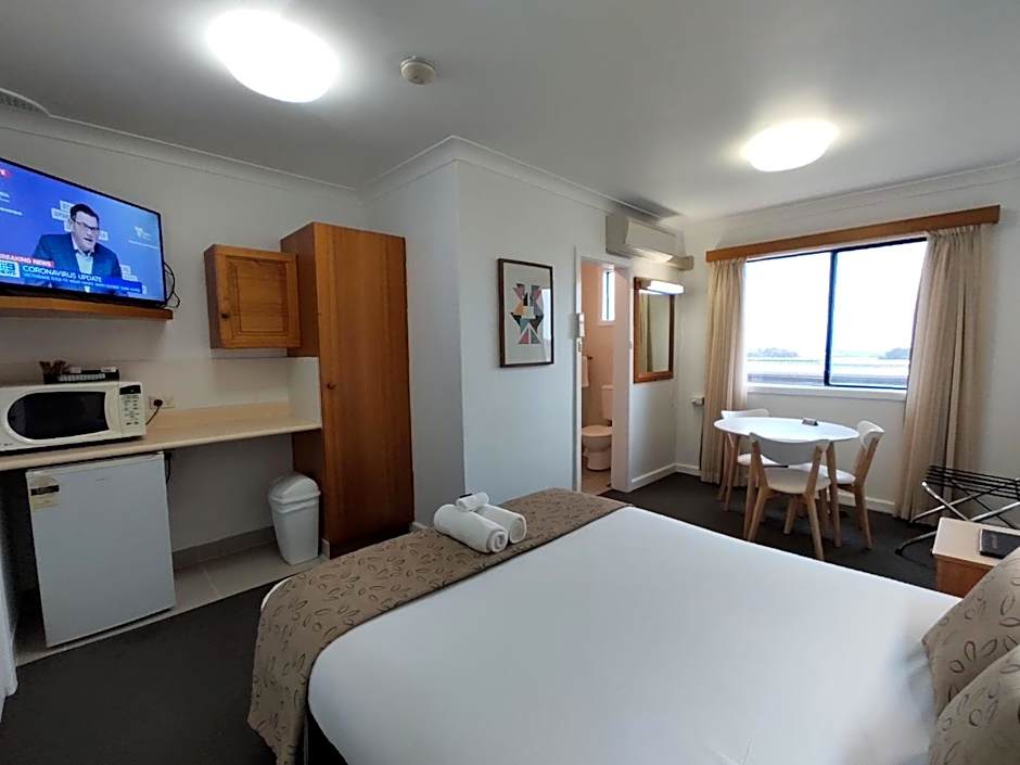 This spacious, carpeted room offers a refrigerator, reverse-cycle air-conditioning, premium linen, a wardrobe/closet. microwave, table, alarm clock, toaster, TV and tea/coffee making facilities. The private bathroom has a shower and a hairdryer. Free WiFi is provided. There is a free parking space available.