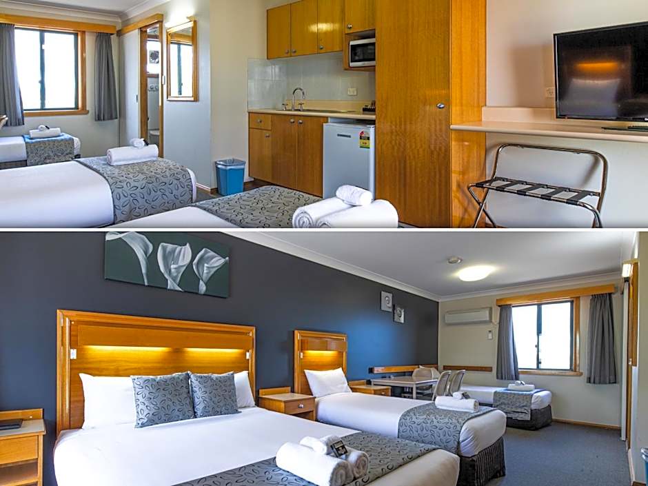 This spacious, carpeted room offers a refrigerator, reverse-cycle air-conditioning, premium linen, a wardrobe/closet. microwave, table, alarm clock, toaster, TV and tea/coffee making facilities. The private bathroom has a shower and a hairdryer. Free WiFi is provided. There is a free parking space available.